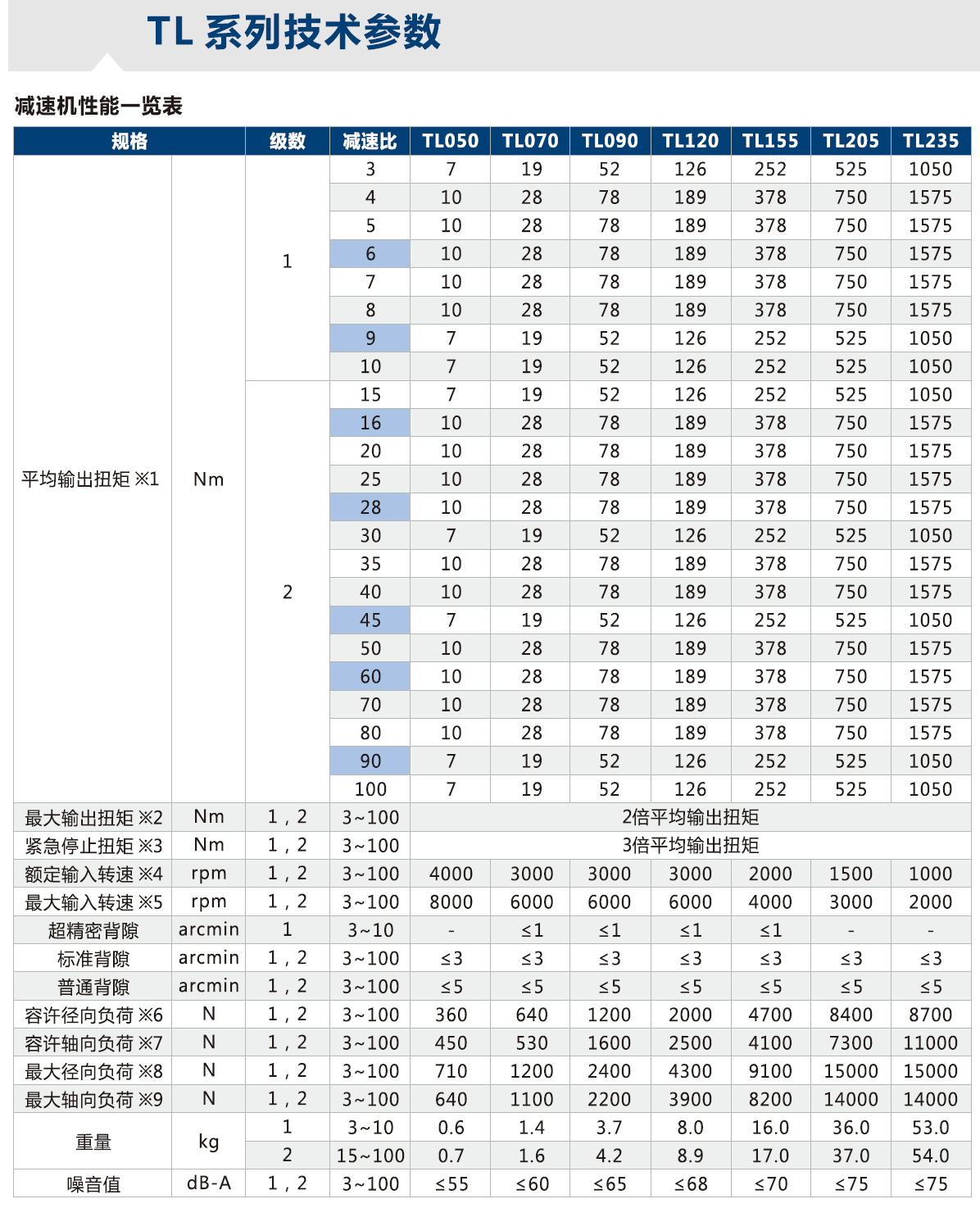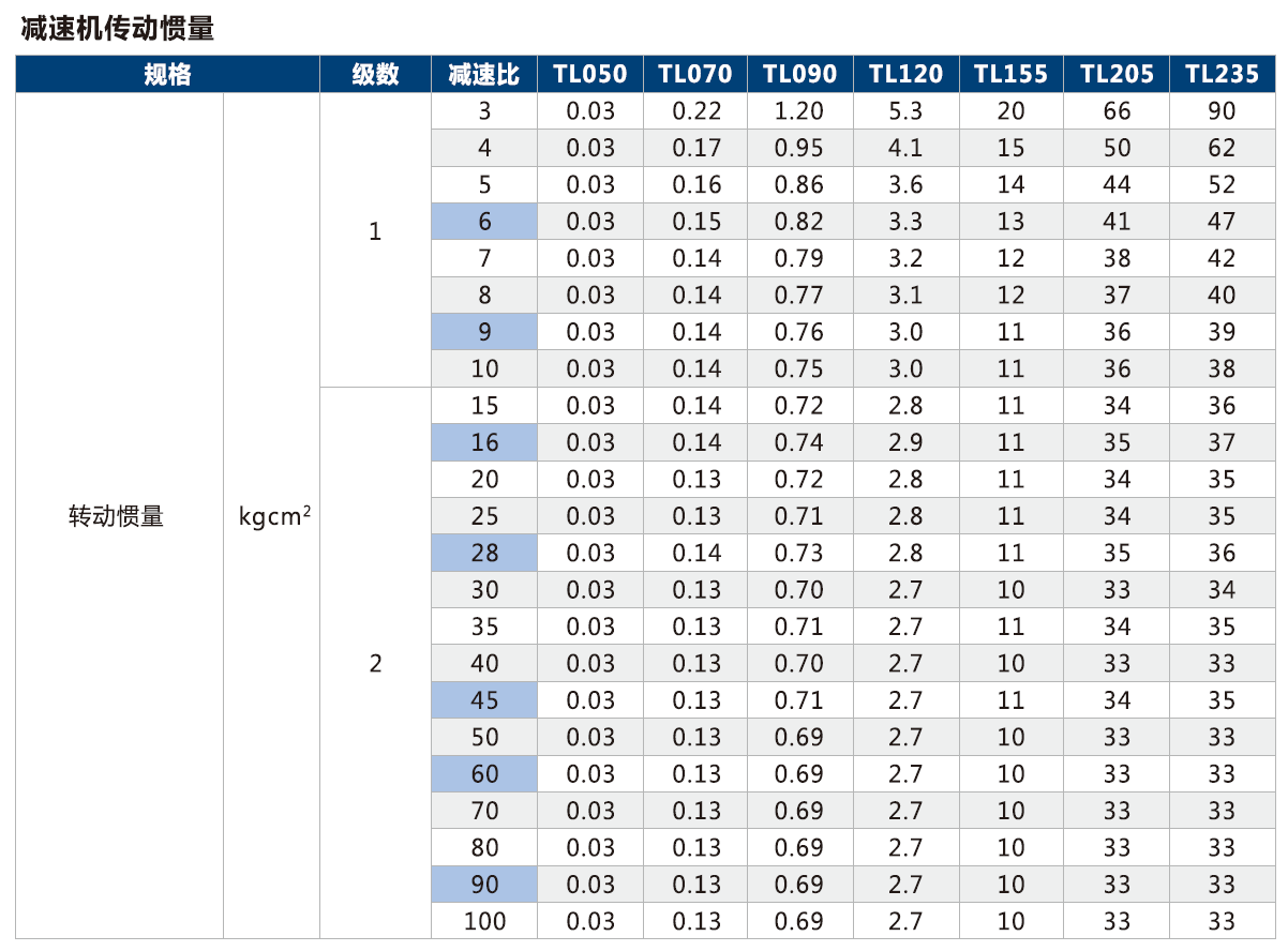 Note: The reduction ratios marked in blue are special ratios and are not currently in mass production. Please contact our company if needed.