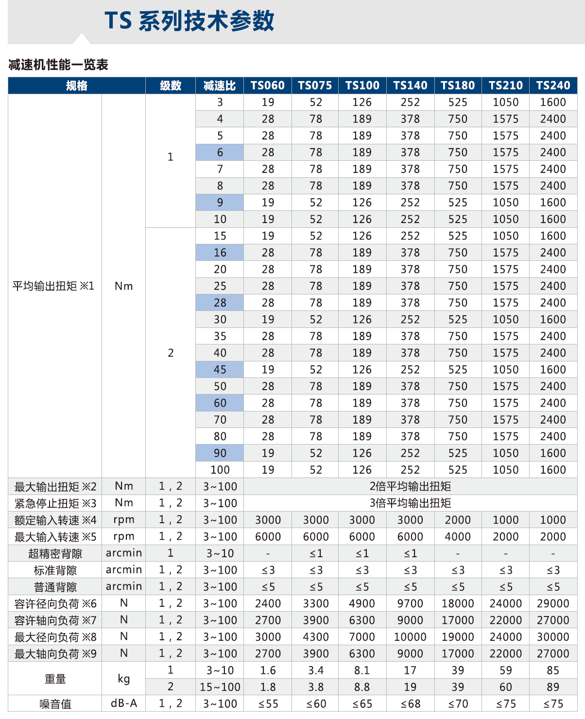 Note: The reduction ratios marked in blue are special ratios and are not currently in mass production. Please contact our company if needed.