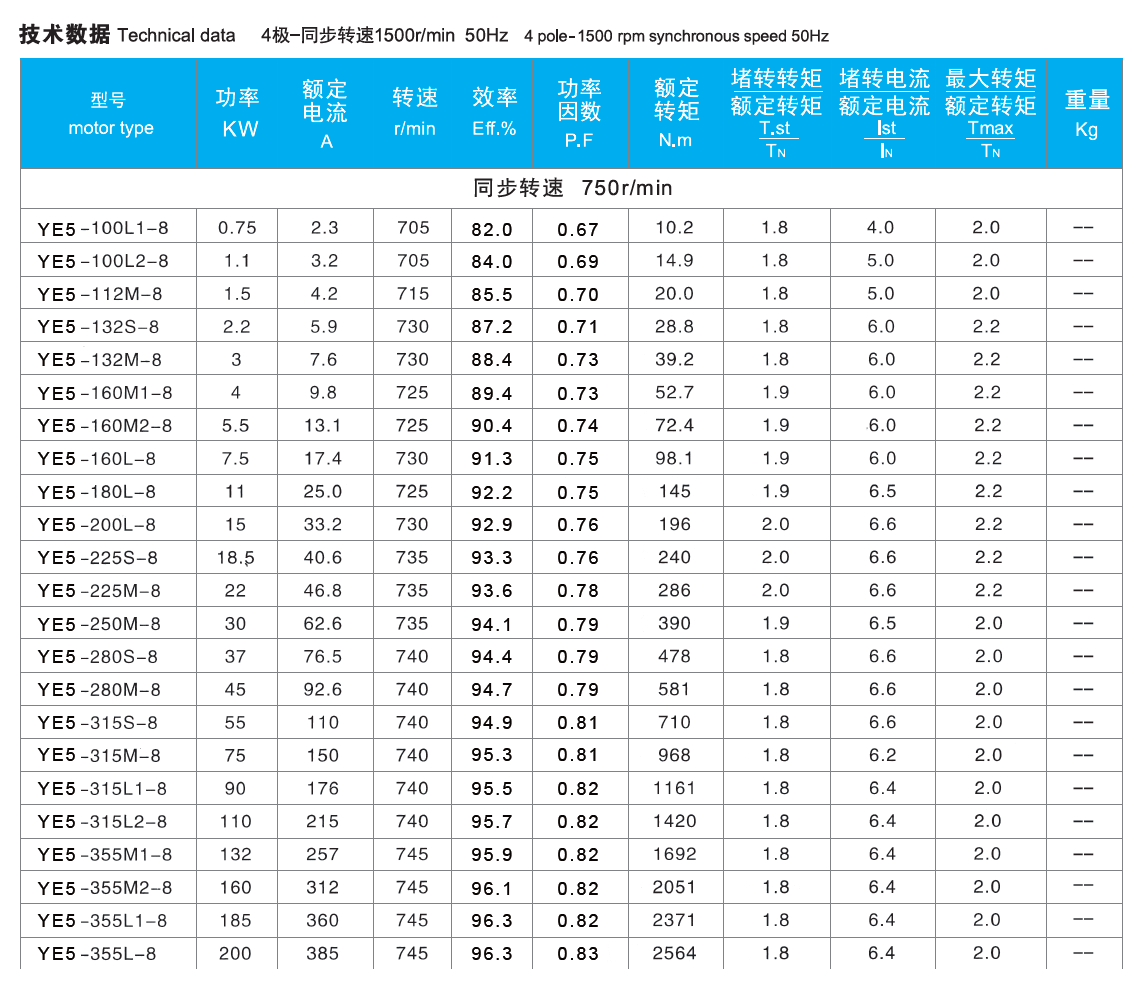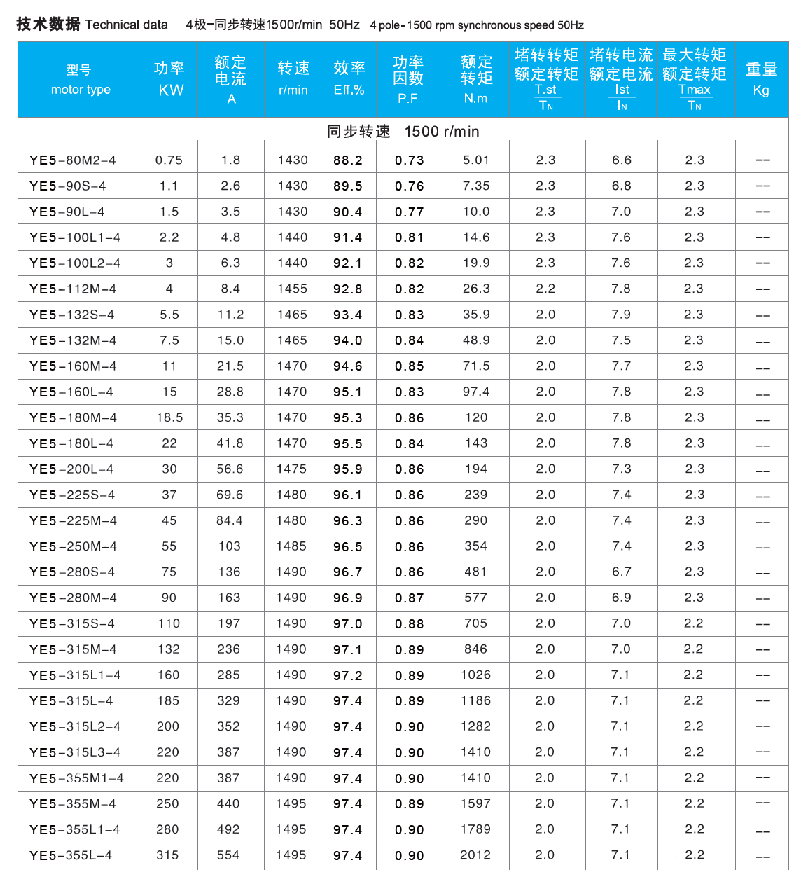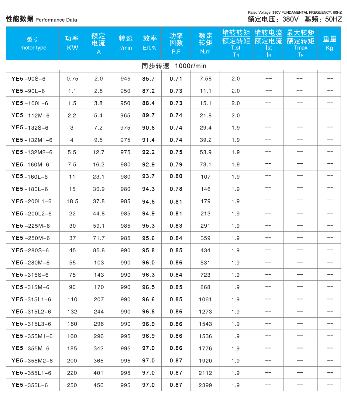 YE5 series premium efficiency three-phase asynchronous motor is inline with IE3 efficiency standard in the provisions of IEC60034-30-2008. And the improvement of the efficiency in its design is in line with the state’s requirements on the energy saving and consumption reducing of the manufacturing sector.