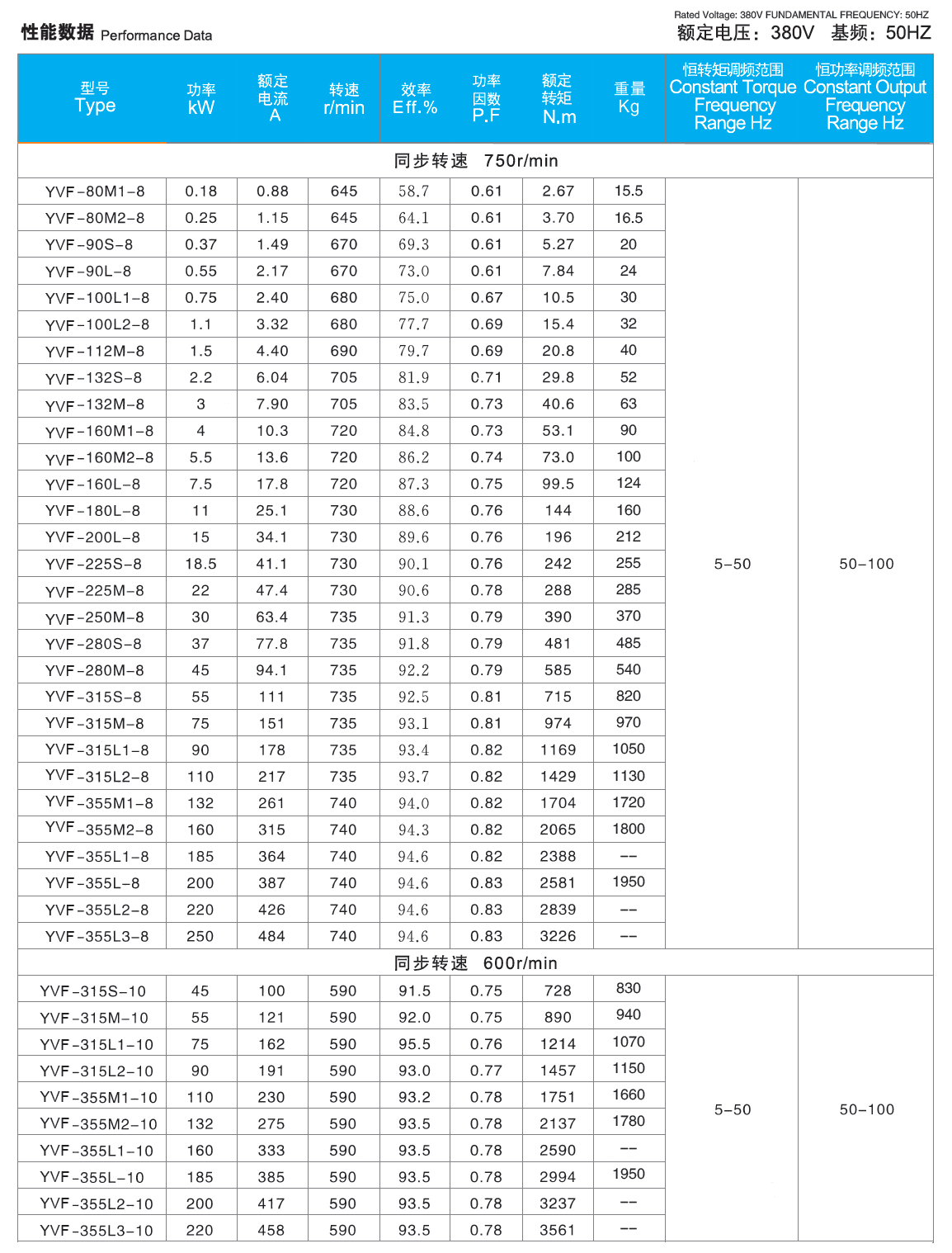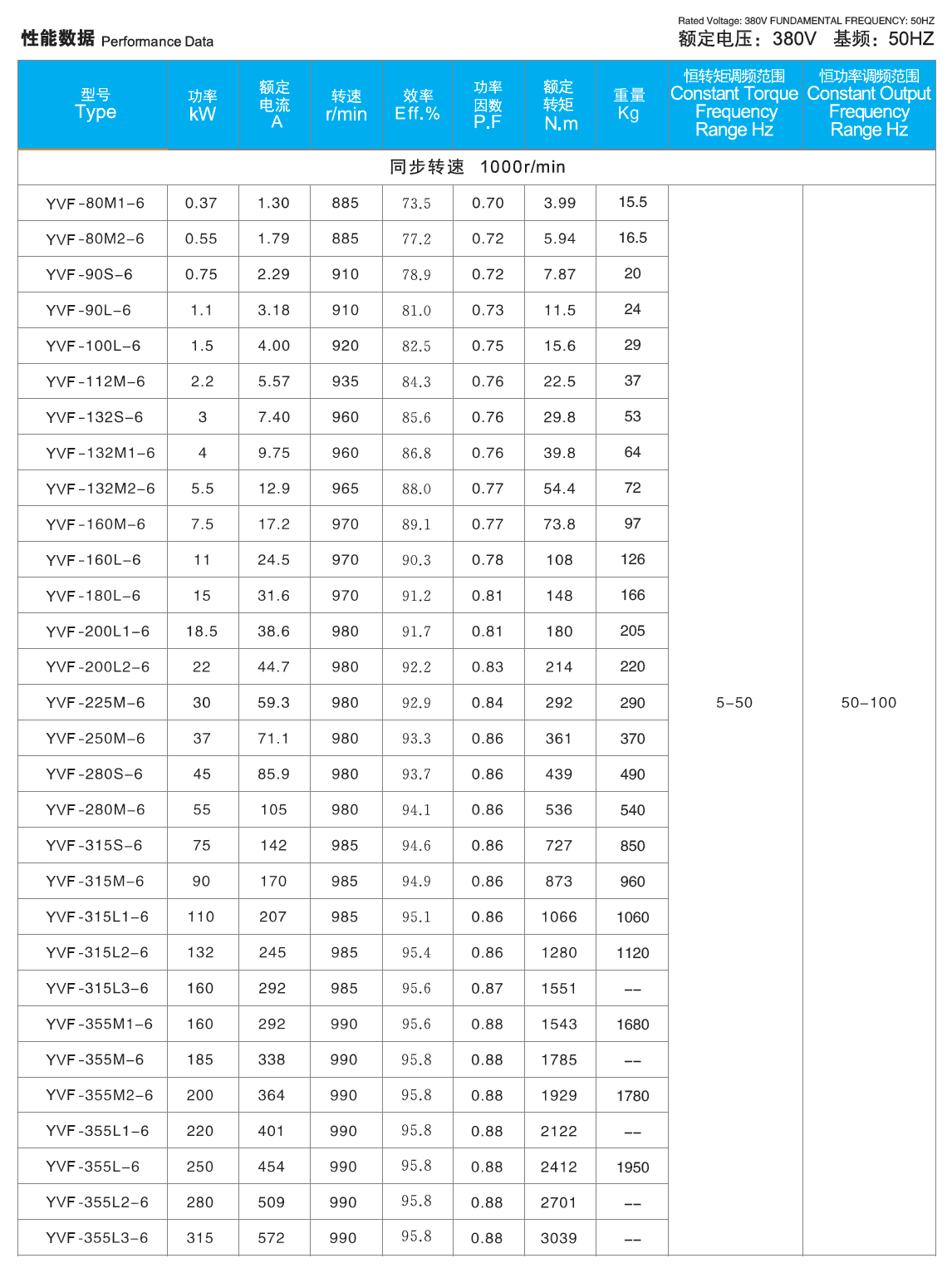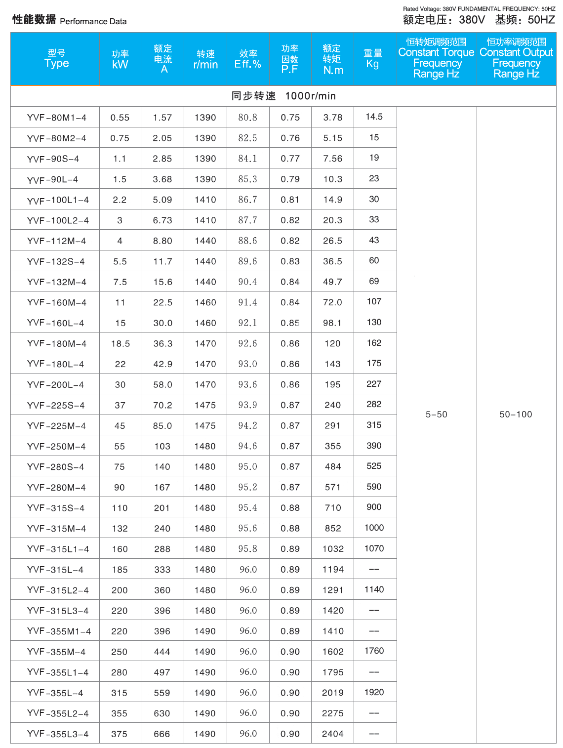 Power range: 0.55-315kW