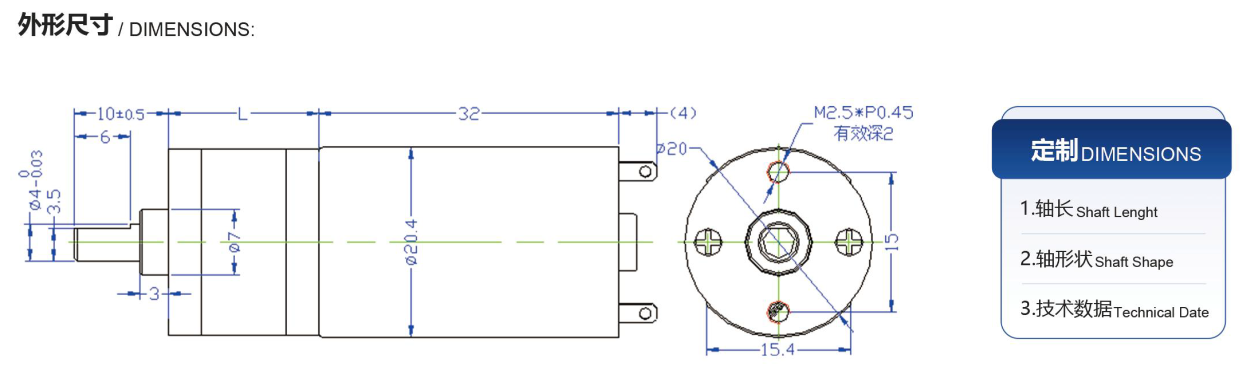 Overall Length: 32mm + L (housing length)