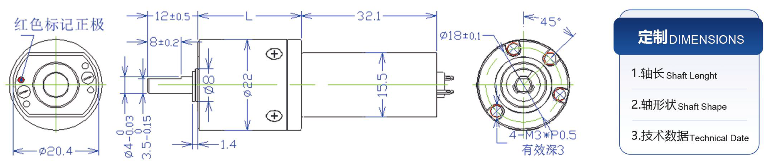 Overall Length: 32.1mm + L (housing length)